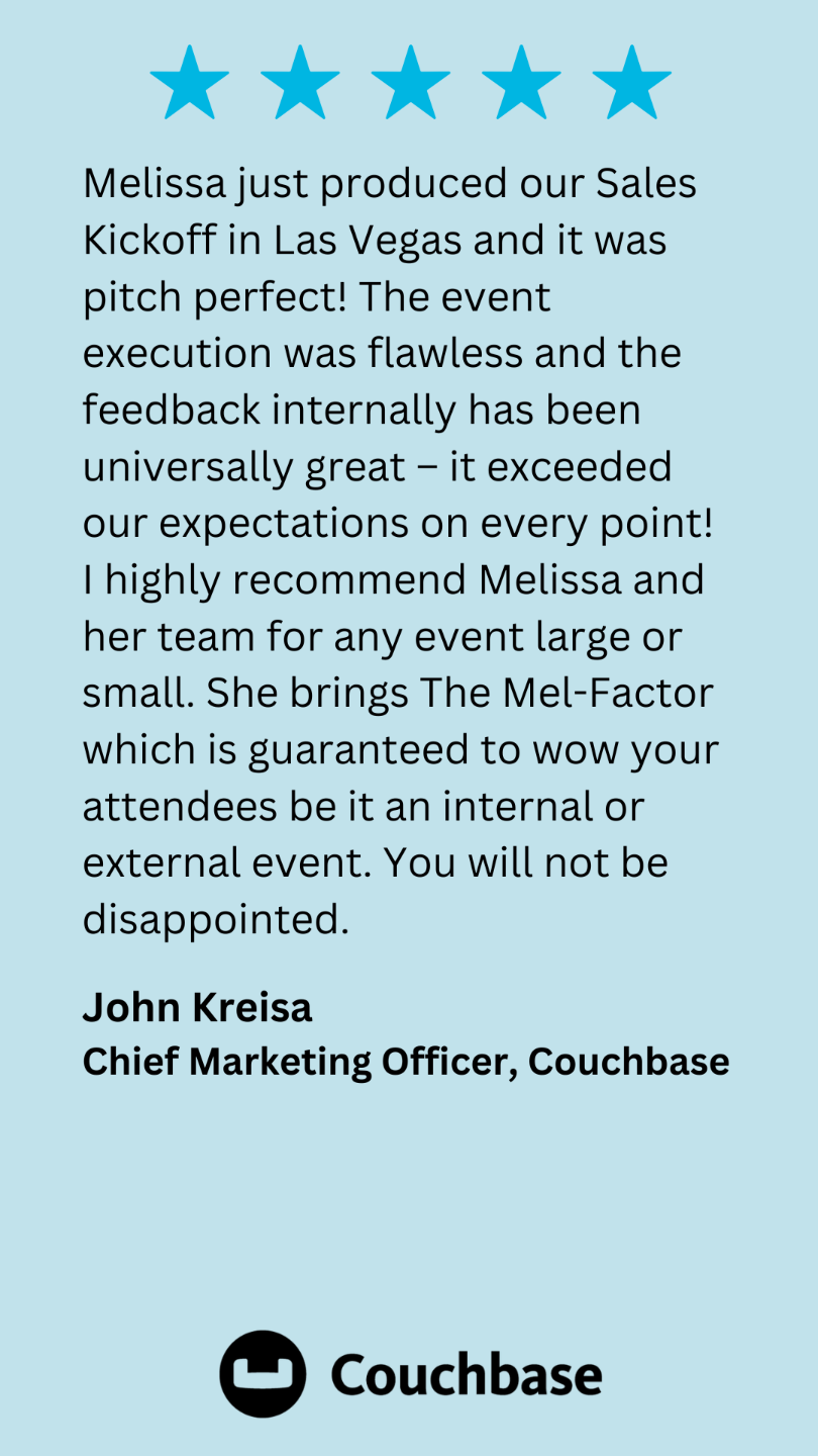 “There are only a few people you’ll remember working with for your entire career, and without a doubt, Melissa is one of them. You may think you understand what it takes to run award-winning events, but until you work with Melissa, you truly have no idea.”