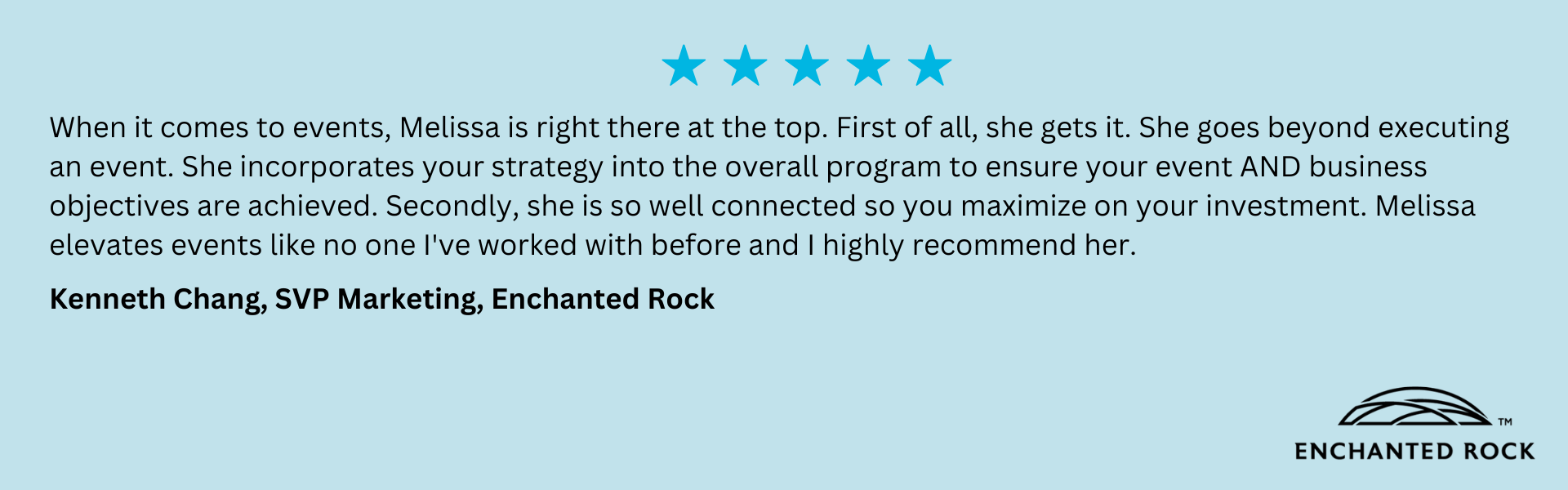 “Melissa is so much more than a skilled event executive—she’s a phenomenon. If you have an event that absolutely must go right, you want Melissa as your partner.”